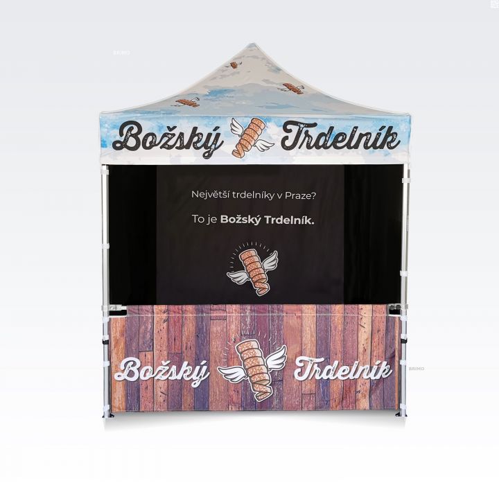 De bestanden voor de bedrukking moeten in de hoogste kwaliteit worden verzonden naar het bevestigingsmailadres dat je ontvangt na het plaatsen van je bestelling. Als de bijlage groter is dan 25 MB, gebruik dan een cloudservice. Op basis van de aangeleverde bestanden maken wij een 2D-visualisatie, die we ter goedkeuring naar je opsturen. Als je je eigen ontwerp wilt maken, vind je een lege sjabloon in de vierde regel tekst nadat je het tentformaat hebt geselecteerd. Door op de hyperlink te klikken, word je doorgestuurd naar de sjabloon. Hierdoor kun je je ideeën beter visualiseren en het goedkeuringsproces versnellen, wat de levering van de hele bestelling versnelt.
