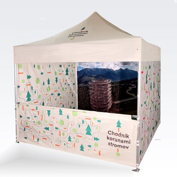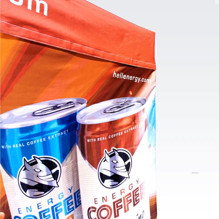 De kleuren zijn zeer intens en deze methode weerspiegelt elk detail perfect op promotietenten. Heldere, verzadigde kleuren trekken de aandacht, en sublimatie zorgt ervoor dat de bedrukking langdurig meegaat zonder kleurverlies. Met deze methode blijft de prijs hetzelfde, ongeacht de grootte van de opdruk (de grootte beïnvloedt de prijs niet; de kosten van de zijwand of het dak blijven gelijk). Hoe groter de bedrukking, hoe zichtbaarder de reclame.