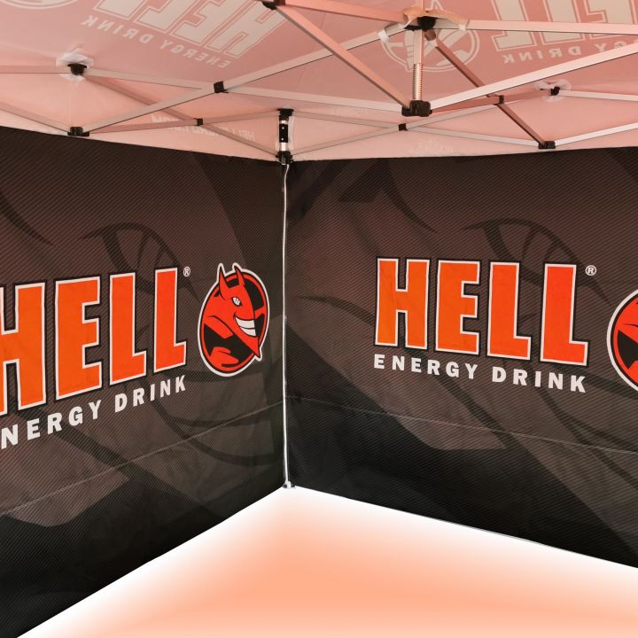 Ongeacht of het een klein formaat van 2x2 m of een grote promotietent van 4x8 m betreft, wij kunnen kleurrijke afbeeldingen printen, individuele grafische elementen toepassen of de volledige tent bedekken met een willekeurig patroon.