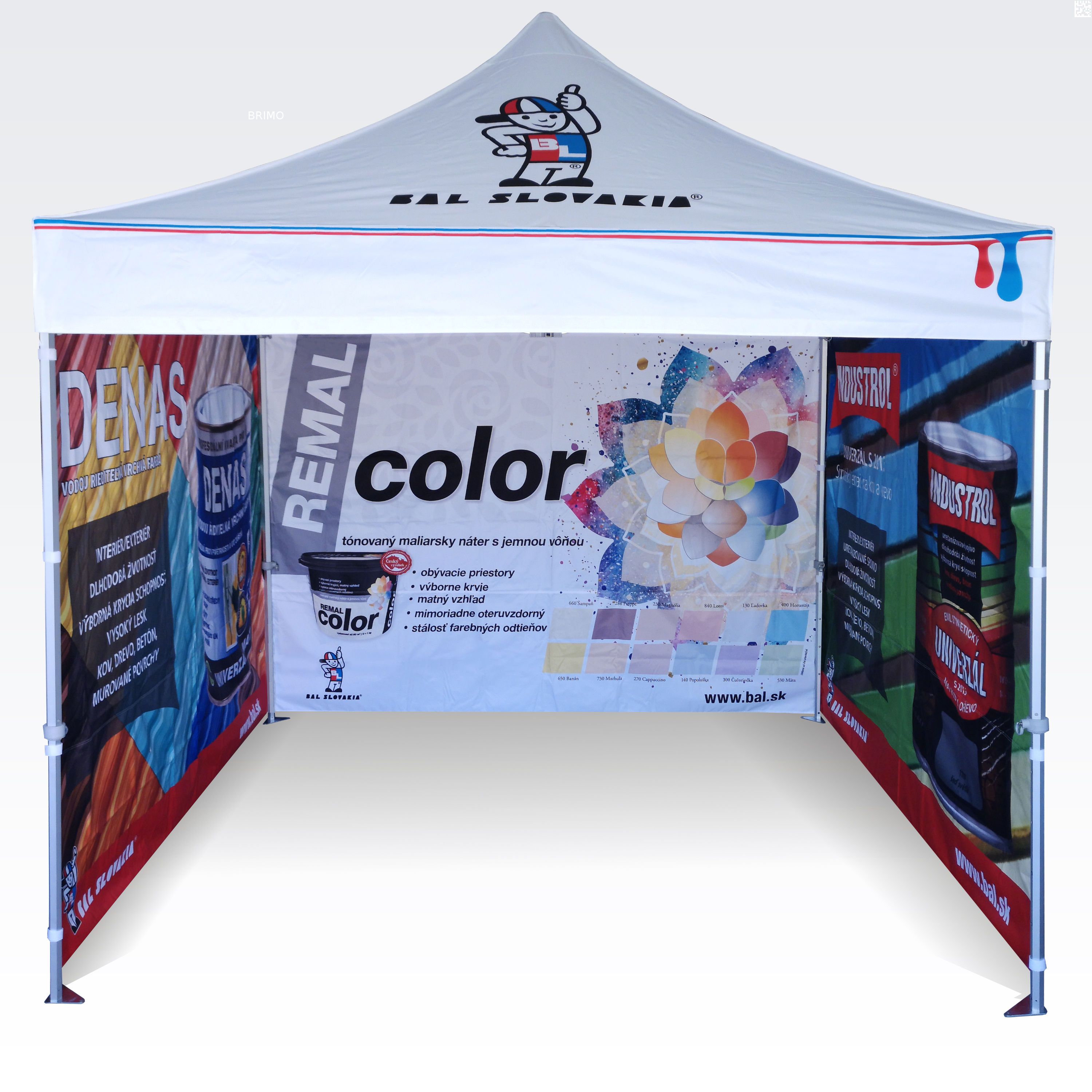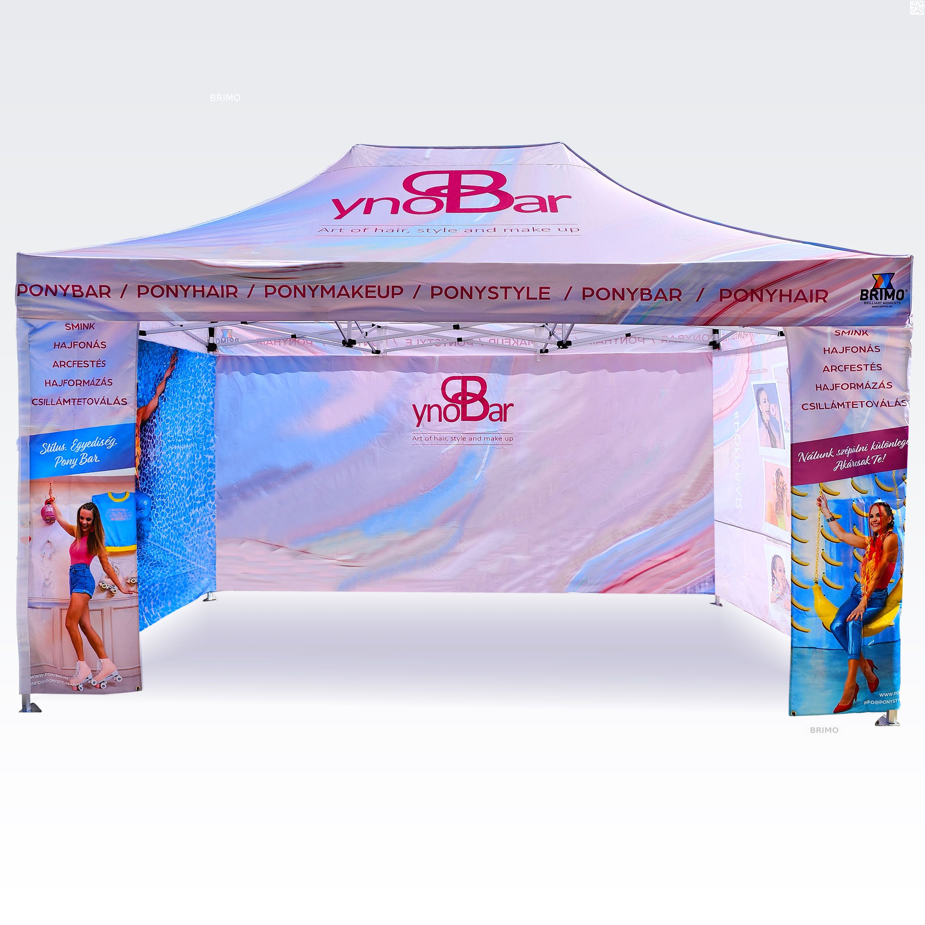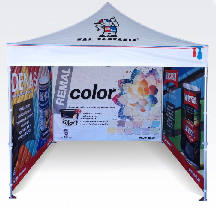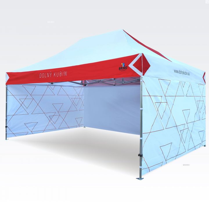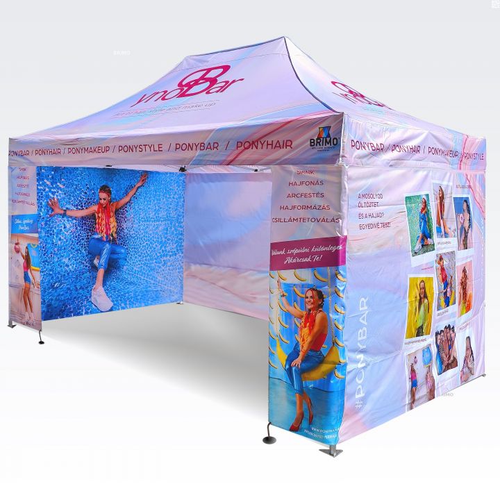 De kleuren zijn zeer intens en deze methode weerspiegelt elk detail perfect op promotietenten. Heldere, verzadigde kleuren trekken de aandacht, en sublimatie zorgt ervoor dat de bedrukking langdurig meegaat zonder kleurverlies. Met deze methode blijft de prijs hetzelfde, ongeacht de grootte van de opdruk (de grootte beïnvloedt de prijs niet; de kosten van de zijwand of het dak blijven gelijk). Hoe groter de bedrukking, hoe zichtbaarder de reclame.