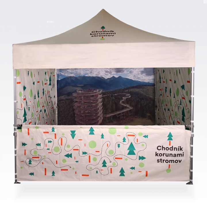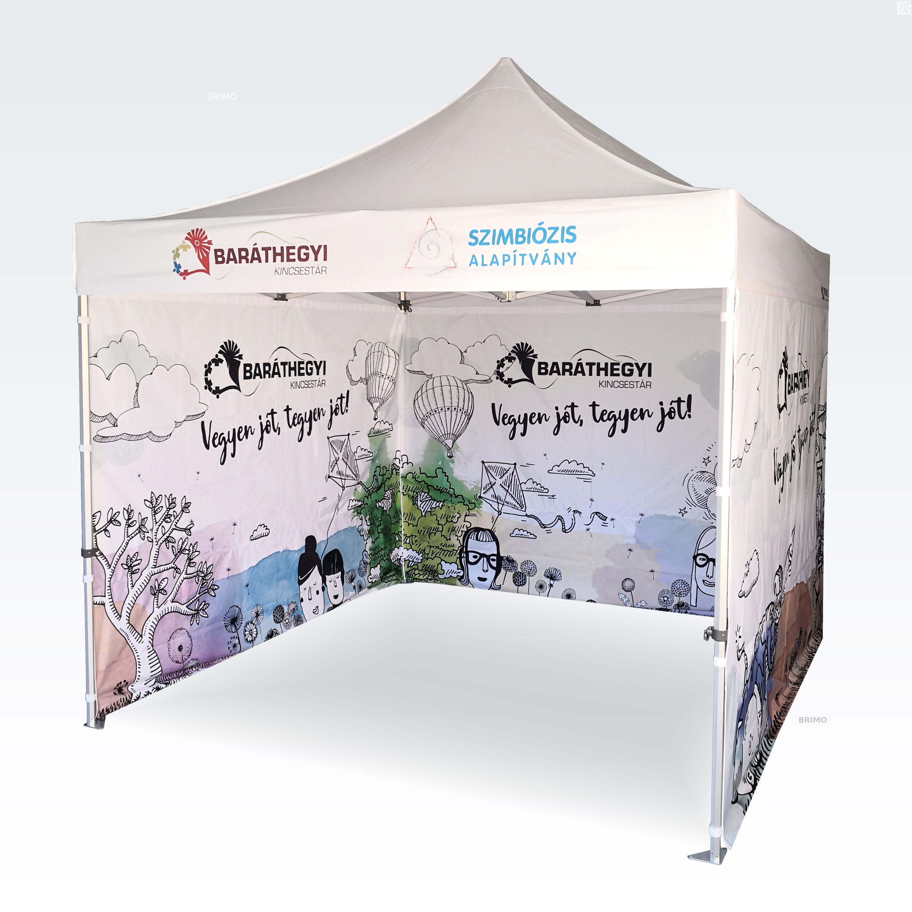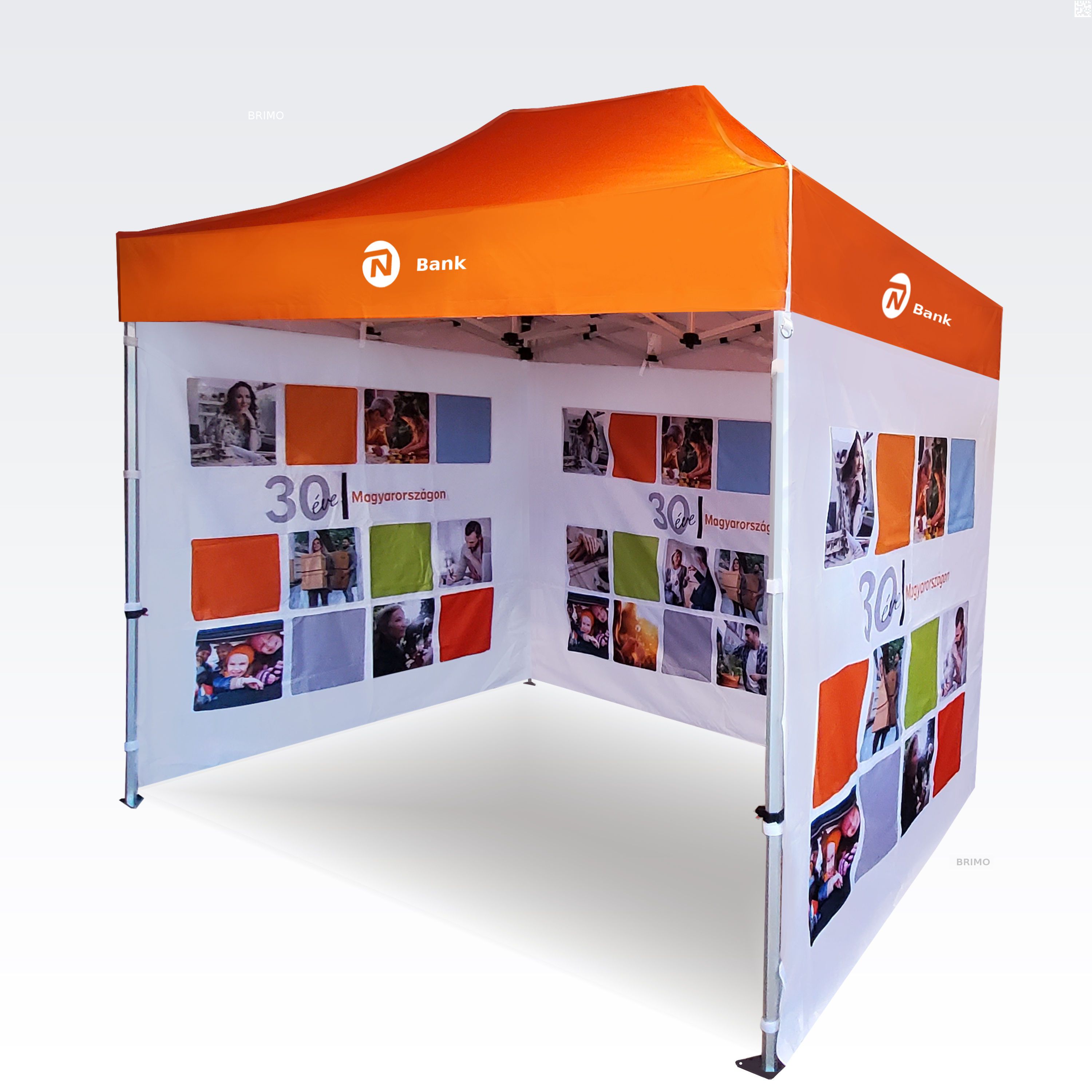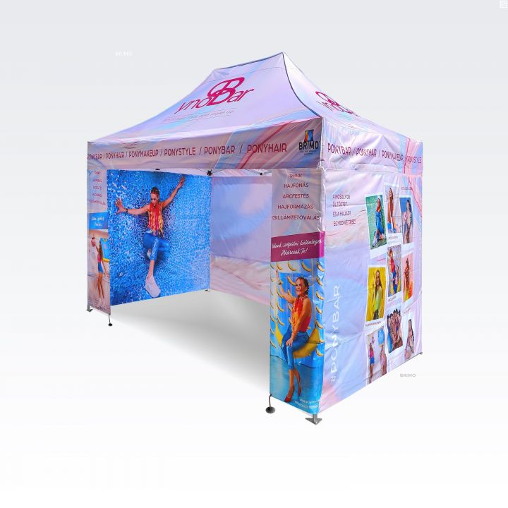 De kleuren zijn zeer intens en deze methode weerspiegelt elk detail perfect op promotietenten. Heldere, verzadigde kleuren trekken de aandacht, en sublimatie zorgt ervoor dat de bedrukking langdurig meegaat zonder kleurverlies. Met deze methode blijft de prijs hetzelfde, ongeacht de grootte van de opdruk (de grootte beïnvloedt de prijs niet; de kosten van de zijwand of het dak blijven gelijk). Hoe groter de bedrukking, hoe zichtbaarder de reclame.