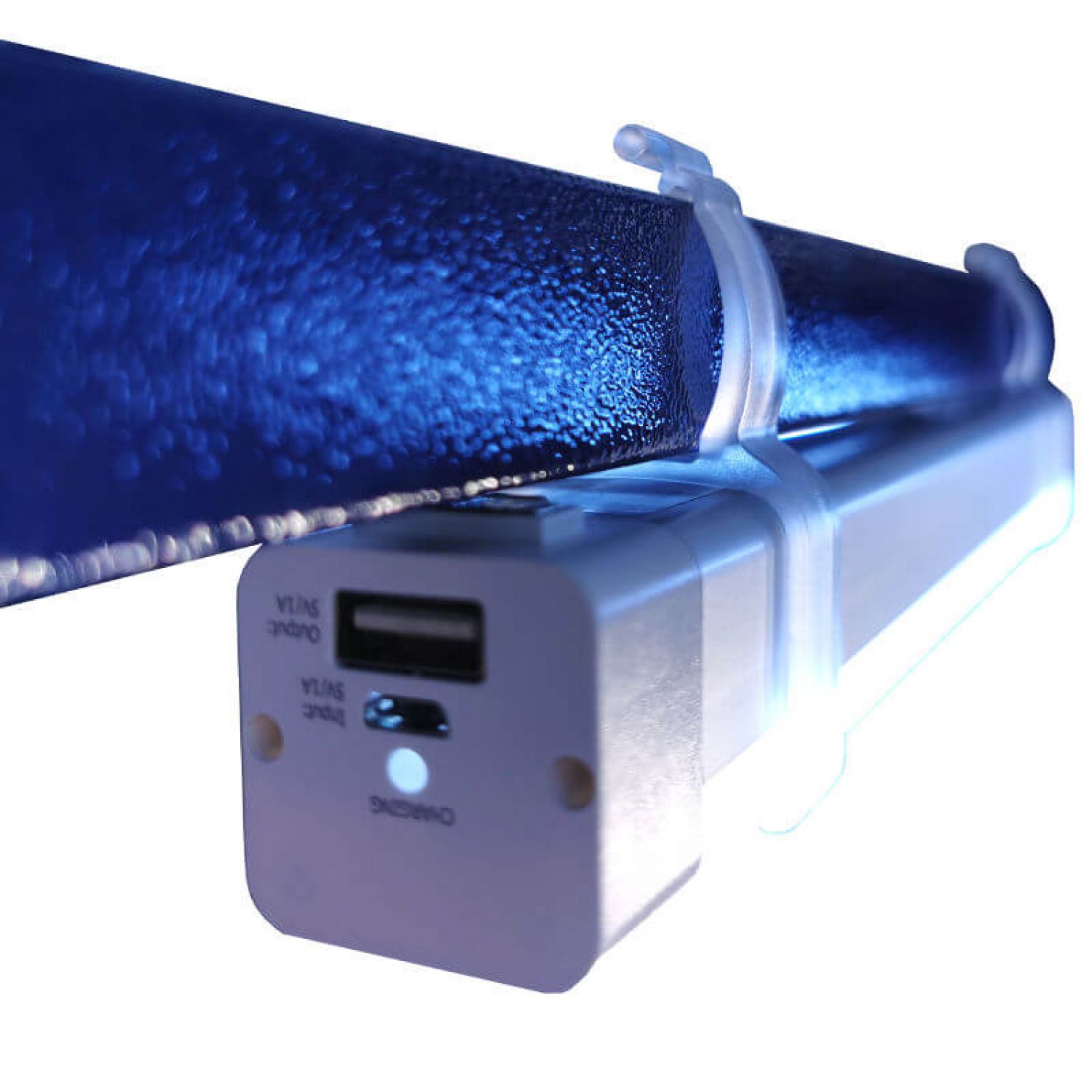 - LED-lampen hebben als voordeel dat er tijdens het gebruik geen stopcontact nodig is. Bovendien kunt u de ingebouwde accu niet alleen gebruiken voor de verlichting, maar ook als POWERBANK voor het opladen van andere apparaten die u via USB oplaadt.