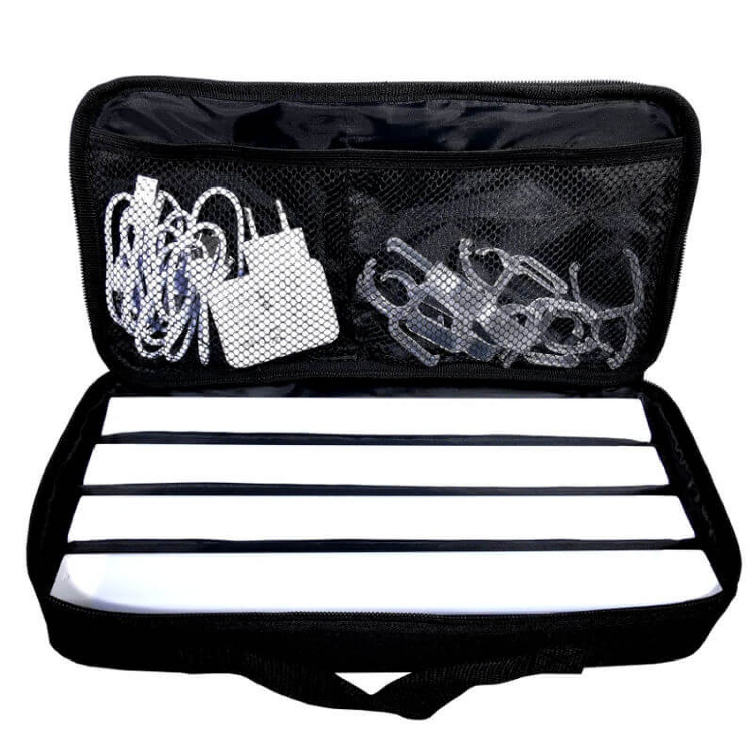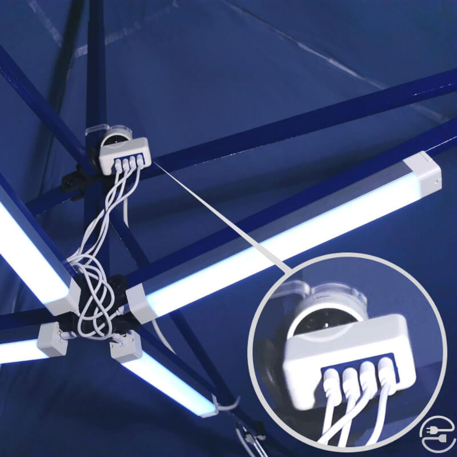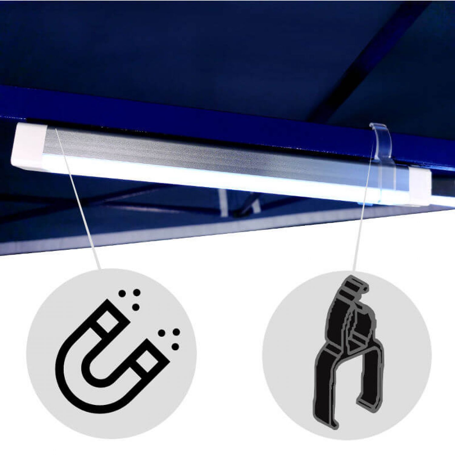- Wordt met een magneet of clip aan de tentstructuur bevestigd.