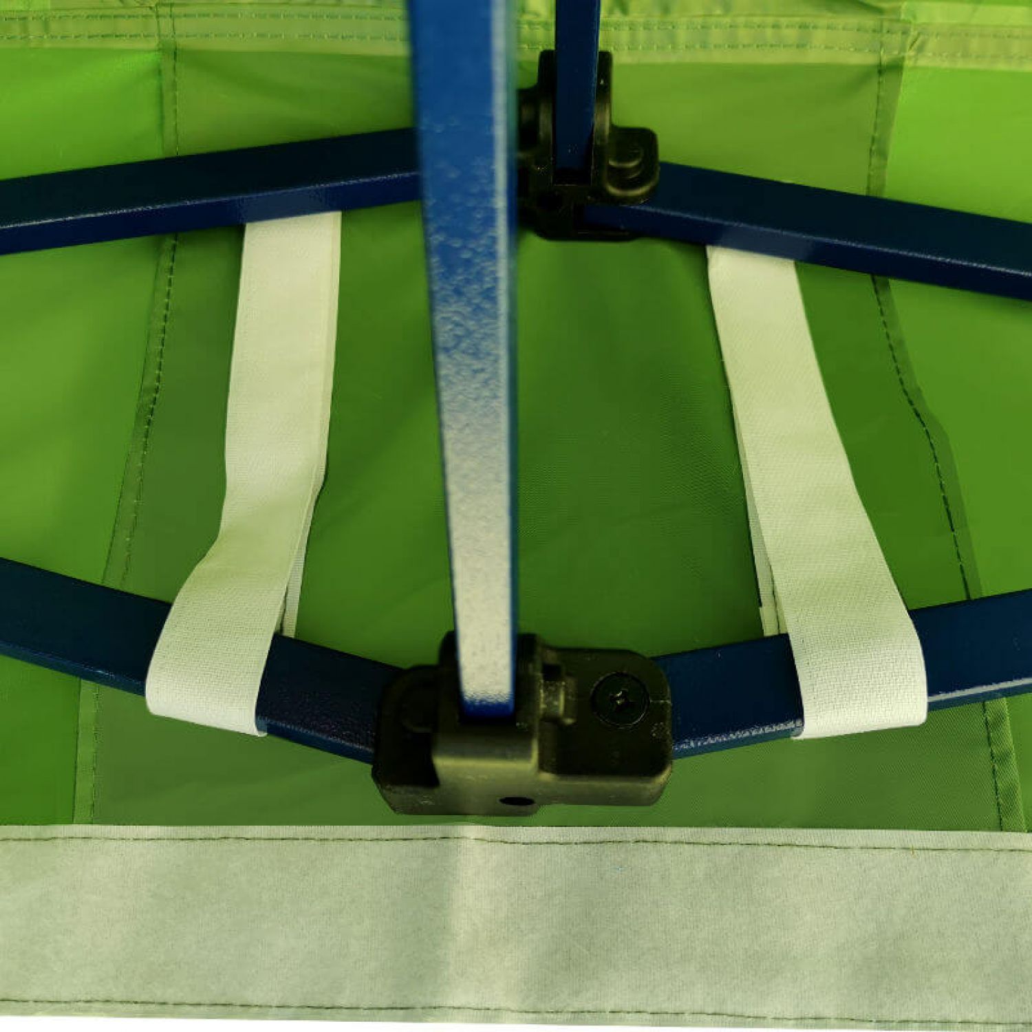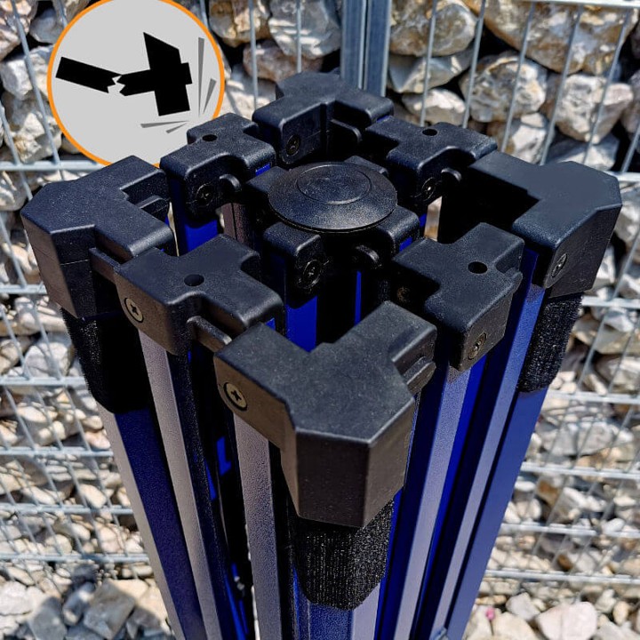 - Eenvoudige montage met klittenband maakt een snelle en veilige bevestiging van de wanden aan het dak en de poten van de constructie mogelijk.