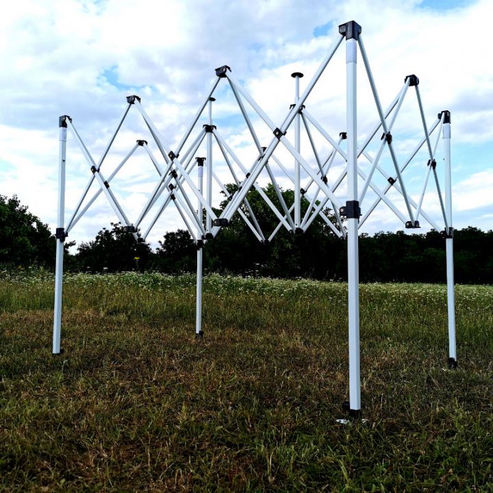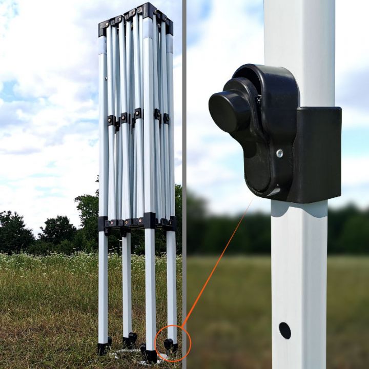 - Schaarmechanisme-systeem: Het voorgemonteerde mechanisme maakt het bliksemsnel opzetten van de kraam mogelijk – zonder dat er gereedschap nodig is. Ideaal voor snelle opbouw vóór de start van de markt.
