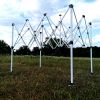 - Verbeterde windbestendigheid: Door de kraam te verankeren met 4 spanlijnen (zie inhoud van het pakket) vergroot u de stabiliteit van het paviljoen op open terrein aanzienlijk.