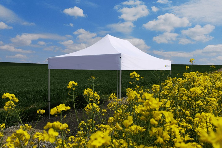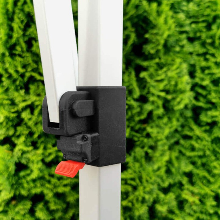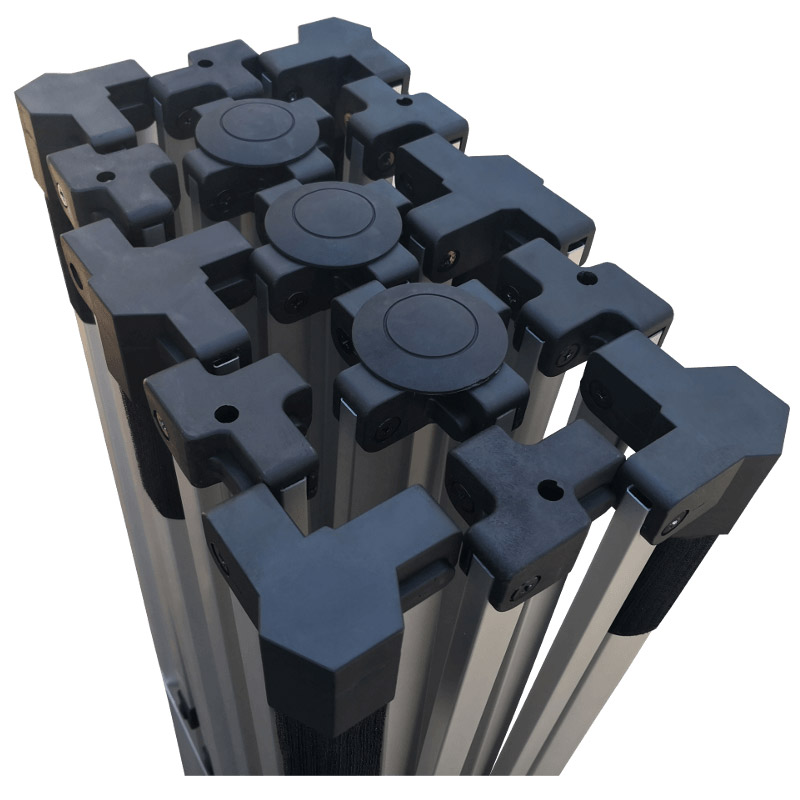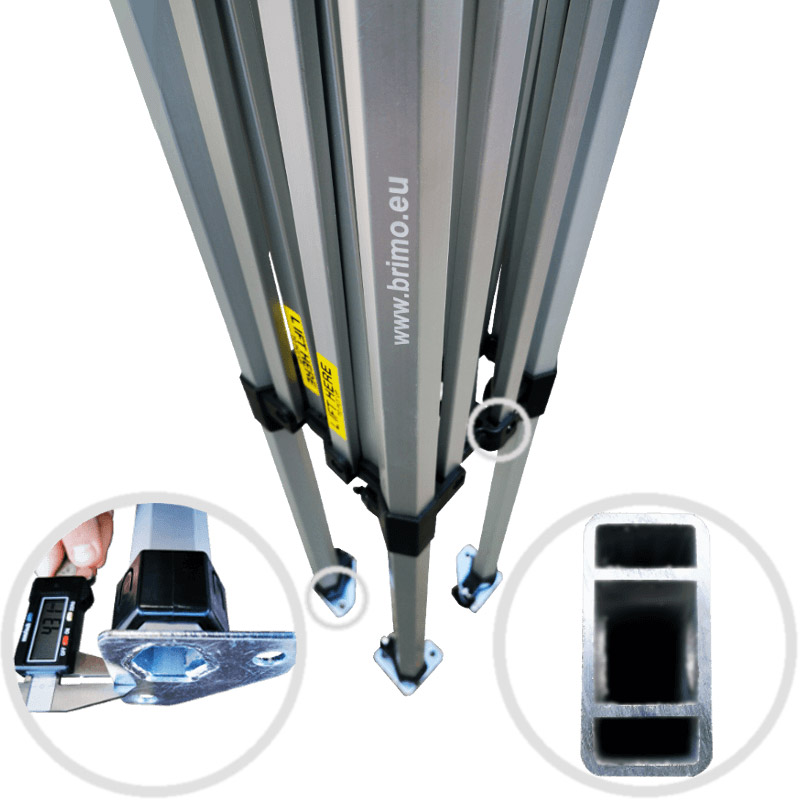 Het tentframe is vervaardigd uit hoogwaardig geanodiseerd aluminium, dat niet roest en er representatief uitziet, zelfs na jaren van gebruik. Een cruciaal element van de duurzaamheid is dat het dak is versterkt met een geribd binnenprofiel. Deze technische oplossing verhoogt aanzienlijk de draagkracht en buigstijfheid van de constructie, zodat de tent ook zwaardere omstandigheden tijdens markten of dorpsdagen aankan zonder stabiliteit te verliezen. Geen ingewikkeld schroeven meer – het opzetten is intuïtief en snel.